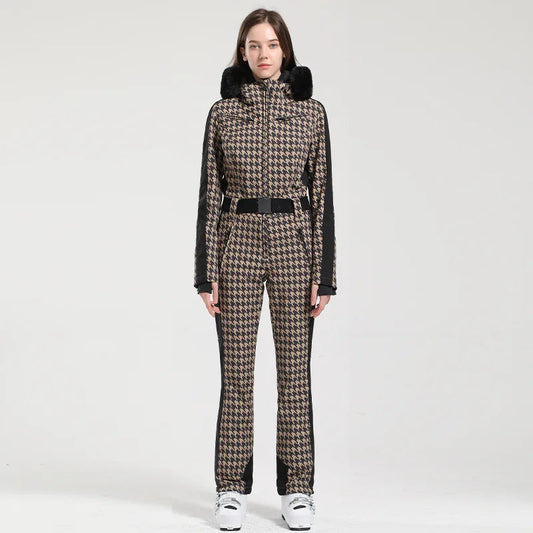 Dam Skidoverall – Slim Fit – Vattenavvisande – Bälte – Fuskpälsluva – Dragkedjefickor