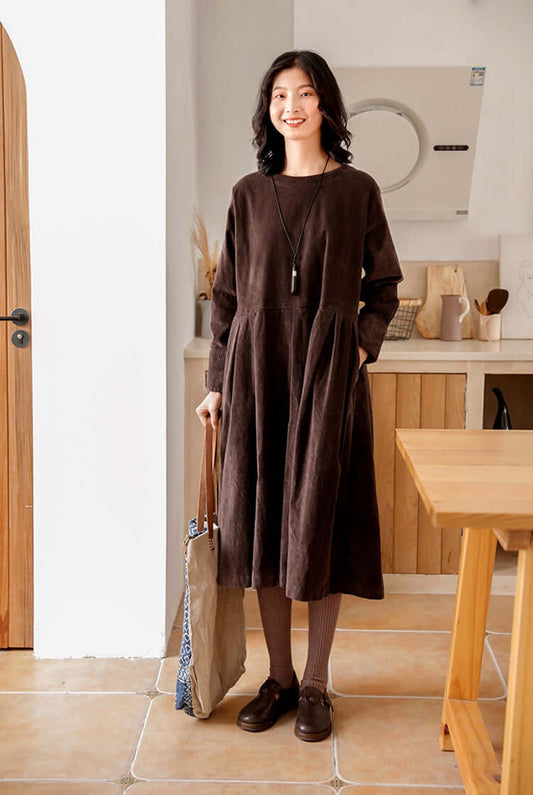 Amelia Oversized A-Linje Klänning | Knappmanschetter Plisserad Klänning