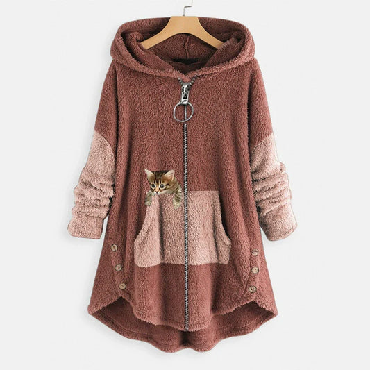 Damjacka med huva – Oversize passform – Mjuk bomullsblandning – Dragkedja
