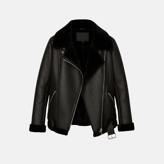 Damjacka Motorcykelmodell – Lös Passform – Fuskpälsfodrad – Asymmetrisk Dragkedja – Midjebälte
