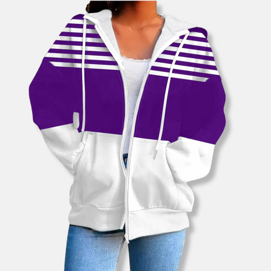 Damjacka med Huva – Oversized Passform – Randigt Mönster – Dragkedja – Fickor