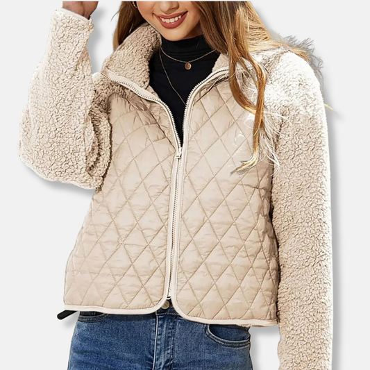 Damjacka – Quiltad med Sherpaärmar – Avslappnad Passform – Kort Skuren med Krage