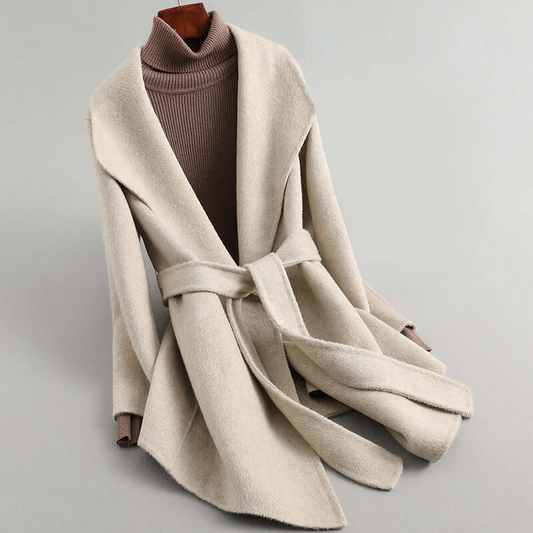 Damjacka – Skräddarsydd Passform – Ullkänsla – Bälte – Dubbelknäppning – Mellanlång