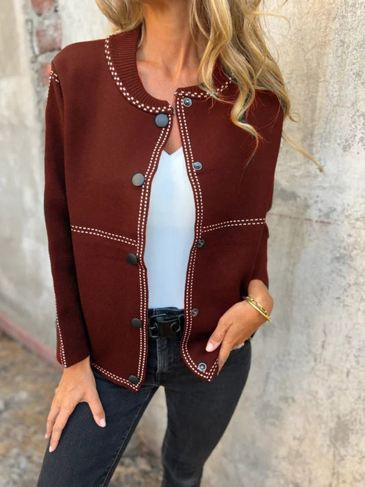 Damjacka – Skräddarsydd Passform – Sammetstextur – Kraglös – Dekorknappar