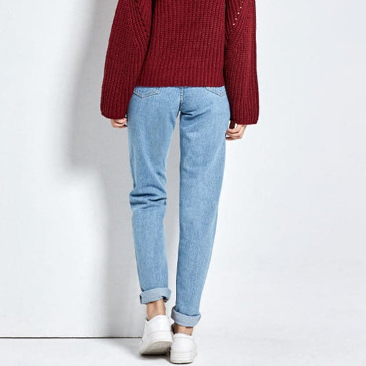 Damjeans - Hög Midja - Knappgylf - Lös Passform - Distressed med Upprullade Benslut