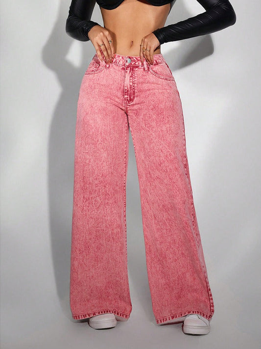 Damjeans – Rak Passform – Lös Midja – Tvättad Denim – Avslappnad Stil