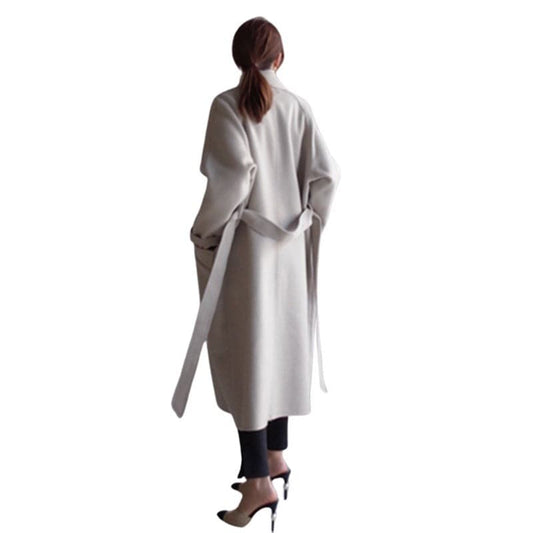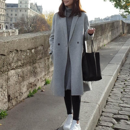 Damkappa - Lång Dubbelknäppt Ullblandning - Avslappnad Passform - Knappar & Sidofickor