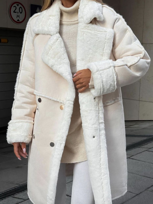 Damkappa - Lång Dubbelknäppt Shearling - Varmt Foder - Notchkrage - Stilren Design