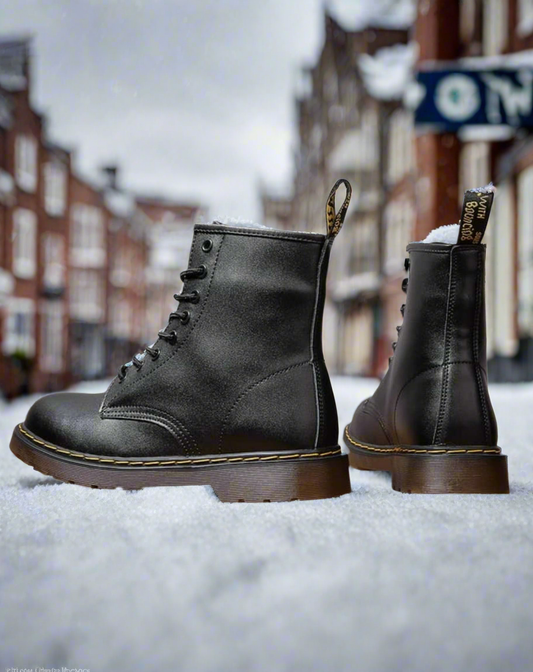 Damkängor – Distressed Läderlook – Snörning – Uppvikbar Krage – Grov Sula