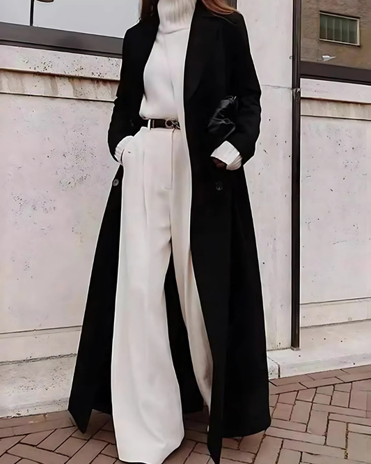 Damkappa i ull – Skräddarsydd passform – Dubbeknäppt – Midjebälte – Knälång