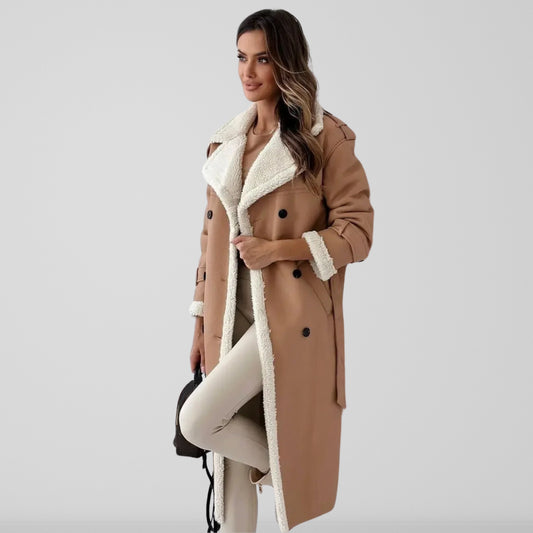 Damkappa – Oversize Passform – Skärp i Midjan – Fuskpälsfodrad – Dubbelknäppt