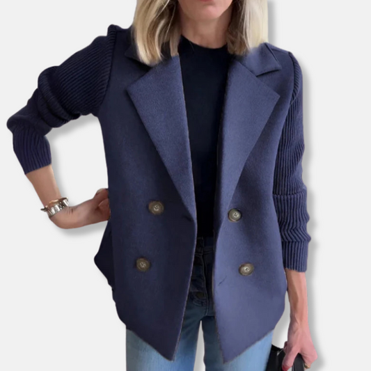 Damkavaj – Figursydd Passform – Dubbla Knappslå – Ribbstickade Ärmar
