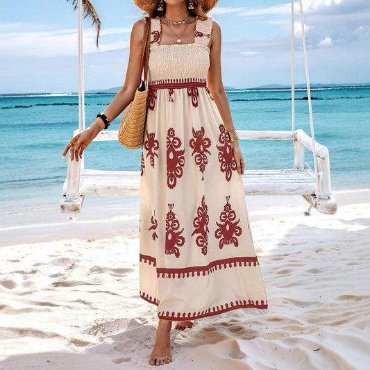 Damklänning maxi – axelbandslös omlottliv – luftig passform – tryckt mönster