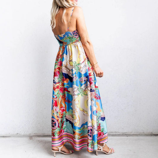 Damklänning maxi – Lös passform – Ärmlös – Djup V-ringning – Blommigt mönster