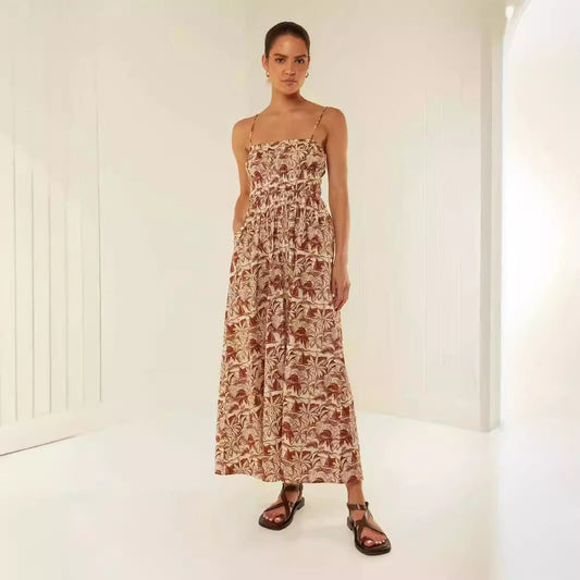 Damklänning maxi – Slim fit – Djup V-ringning – Blommigt tryck – Lätt och luftig