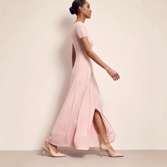 Damklänning maxi – Slim fit – V-ringning – Korta ärmar – Plisserad med slits