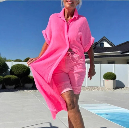 Damklänning midi – Avslappnad passform – Knäppning fram – Naturliga fibrer – Kort ärm
