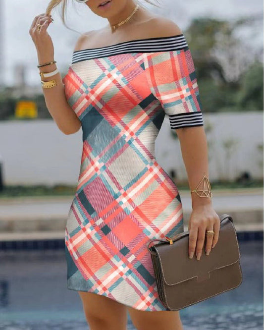 Damklänning off-shoulder – Slim fit – Kort ärm – Mini – Grafiskt tryck – Andningsbart tyg