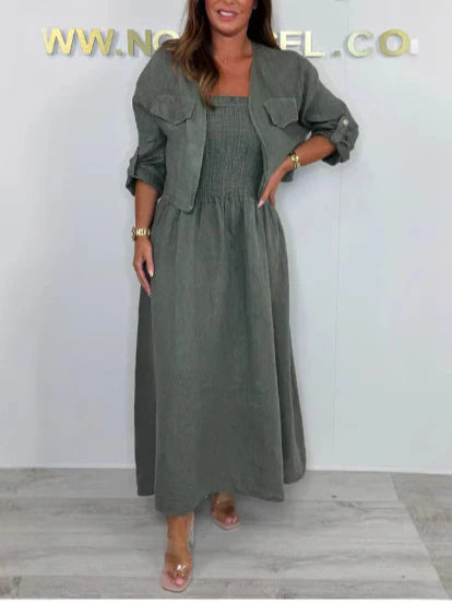 Damklänning set – Maxiklänning med smockliv – Avslappnad passform – Med jacka