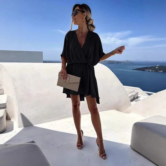 Damklänning omlott – Djup V-ringning – Avslappnad passform – Lätt och luftig