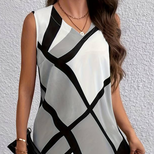 Damklänning utan ärm – V-ringad – Rak passform – Lättviktsmaterial – Modern design