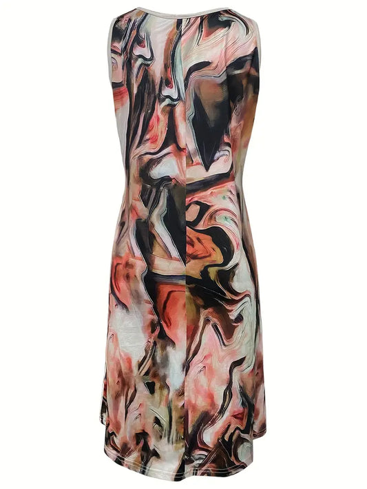 Damklänning – Ärmlös V-ringning – Abstrakt Mönster – Bekväm Passform