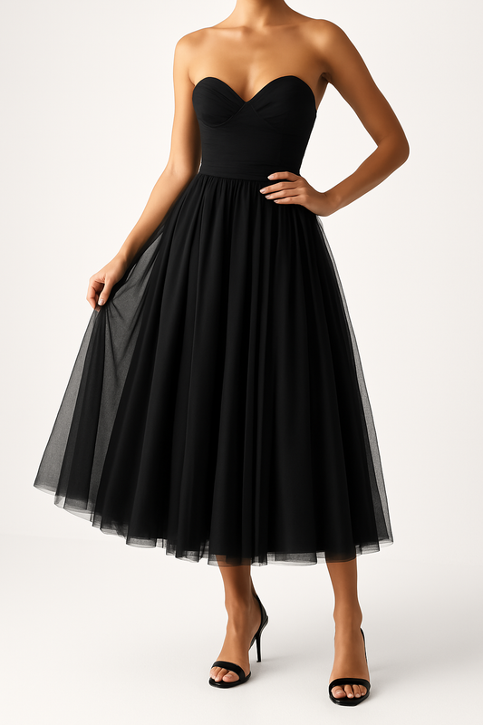 Damklänning – Axelbandslös Midiklänning – Figurnära Liv – A-linjeformad Siluett