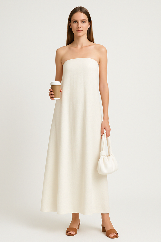 Damklänning – Bandeaumodell – Bomullslinblandning – Avslappnad Passform – Hellång Rygglös
