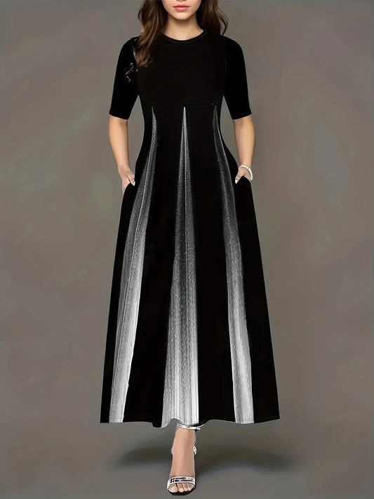 Damklänning – Maxilängd – Plisserad Kjol – Kort Ärm – Sidofickor