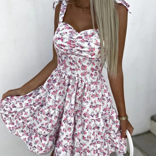 Damklänning – Miniklänning med bohemiskt mönster – Ärmös – V-ringad