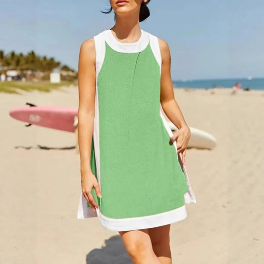 Damklänning – Miniklänning – Ärmfri – Lös Passform – Djup Rygg – Naturliga Fibrer