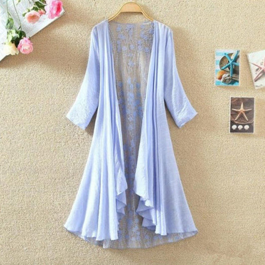 Damkofta – Lätt Transparent Chiffontyg – Lös Passform – Öppen Front Lång Ärmar