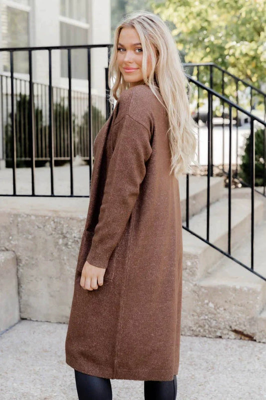 Damkofta – Lång Oversize Passform – Grov Ribbstickad – Öppen Front med Fickor