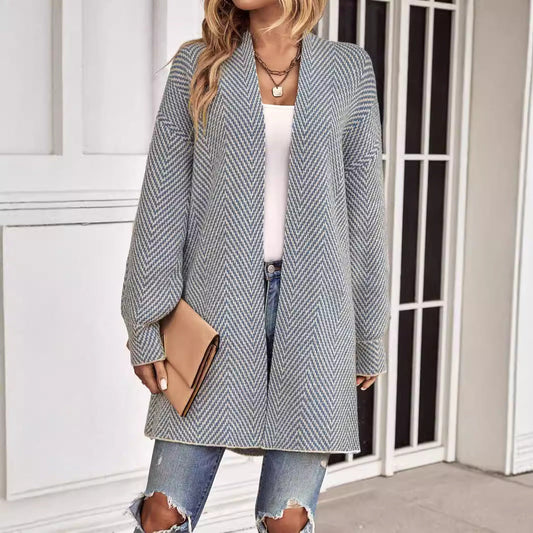 Damkofta – Mjukstickad – Avslappnad Passform – Öppen Front – Fiskbensmönster