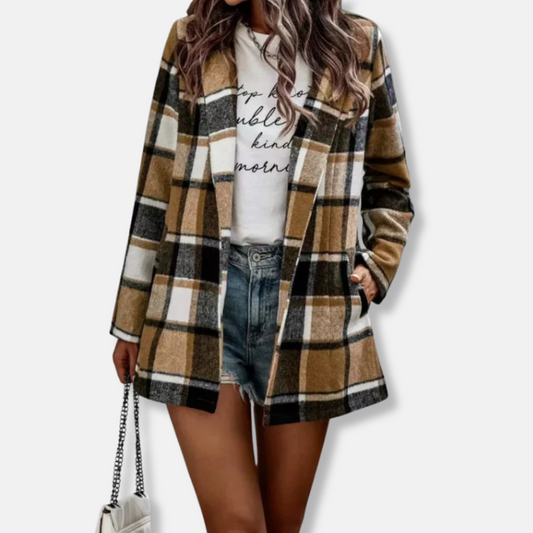 Damkofta – Oversized Passform – Ullblandning – Rutigt Mönster – Lång Ärmar – Öppen Front