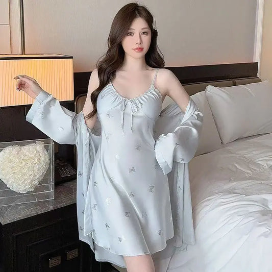Damnattklädesset - Elegant spaghettibandsunderklänning - Morgonrock med böljande ärmar