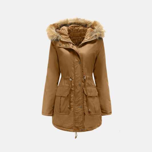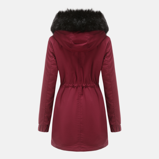 Damparkas – Fleecefodrad – Figursydd Passform – Huva med Fuskpäls – Medeldjup Längd