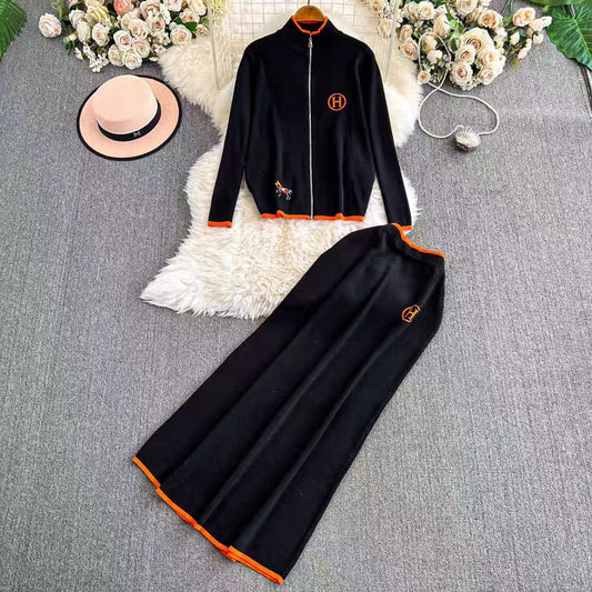 Damset kofta och kjol – Ullmix – Normal passform – Dragkedja – Broderade detaljer