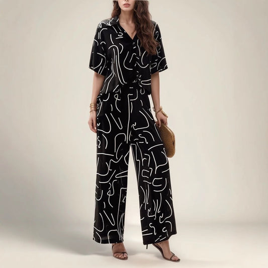 Damset i två delar – Oversize-modell – Andningsbar bomull – Kortärmad – Lösa byxor – Abstrakt mönster