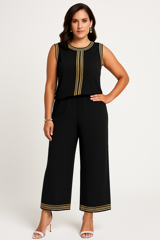 Damset med ärmlös topp och vida byxor – V-ringning – Justerbar midja – Luftig passform