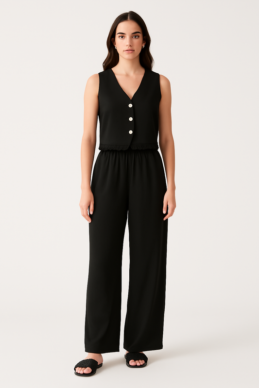 Damset med väst och vida byxor – Skräddad passform – Spetsdetalj – Andningsbart tyg