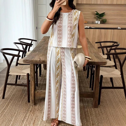 Damset topp och vida byxor – Avslappnad passform – Hög midja – Geometriskt mönster