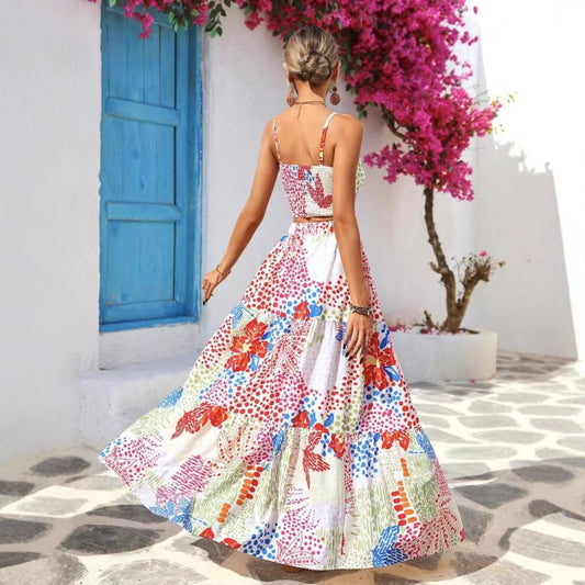Damset – Ärmlös Crop Top – A-linjekjol i Bomullsblandning – Lätt och Andningsbar