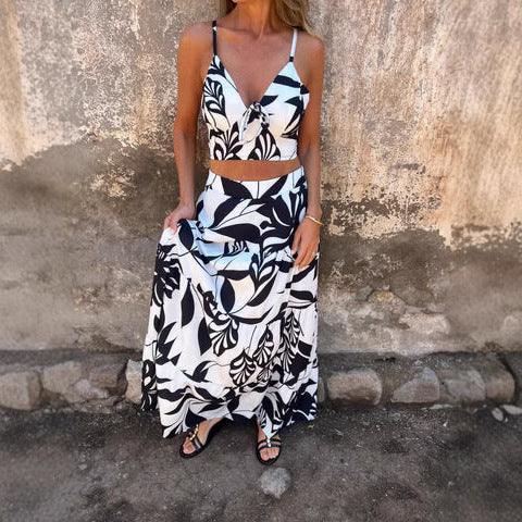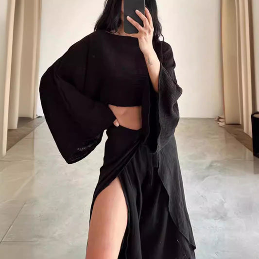 Damset – Kort Topp med Knytband – Lång Fladdrig Kjol – Andningsbart Tyg