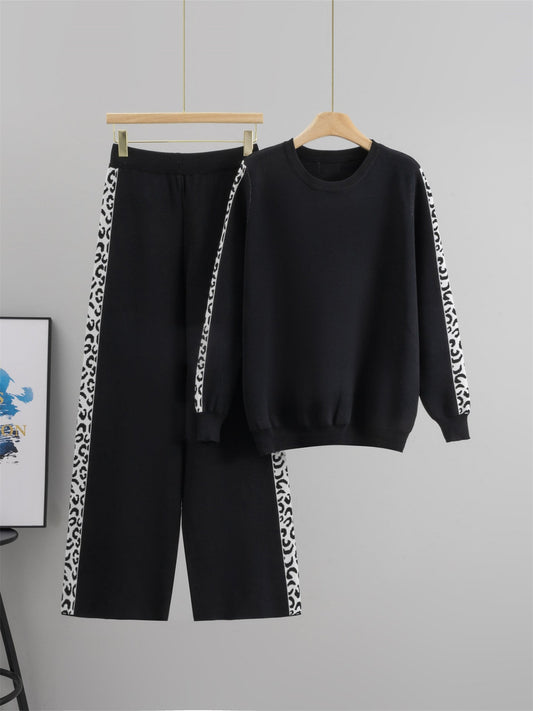 Damset – Stickad tvådelad kostym – Lös passform – Rundhalsad tröja – Vida byxor