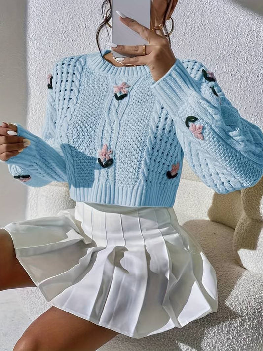 Damstickad tröja - Kabelstickad mönster - Broderade detaljer - Croppad passform