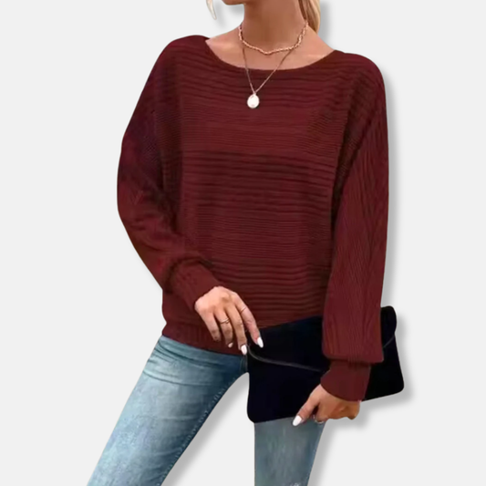 Damstickad Topp – Oversize Passform – Dolmanärmar – Ribbad Fåll och Muddar