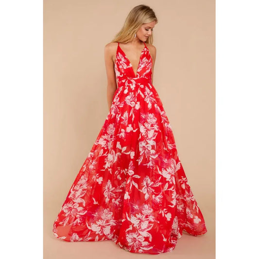 Damsommarklänning med maxi-krage - Djup halsringning - Ärmlös - Blommigt tryck