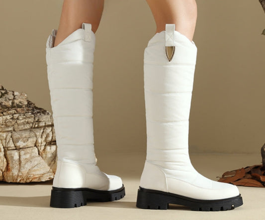 Damstövlar Knähöga – Figurnära Passform – Quiltad Ovandel – Grov Sula