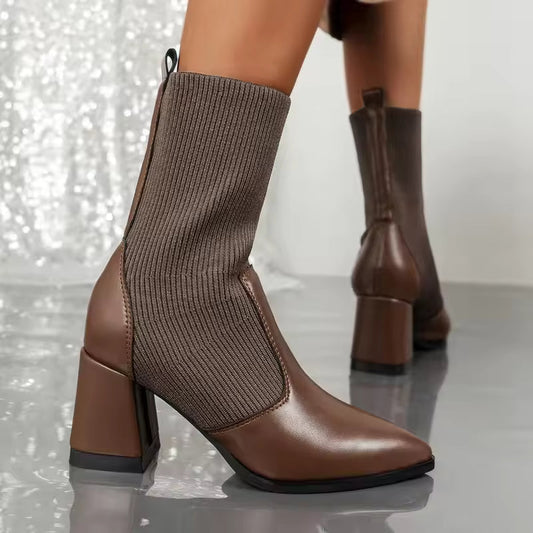 Damstövletter – Pointig tå – Stickad skaftdesign – Blockklack – Figurnära passform